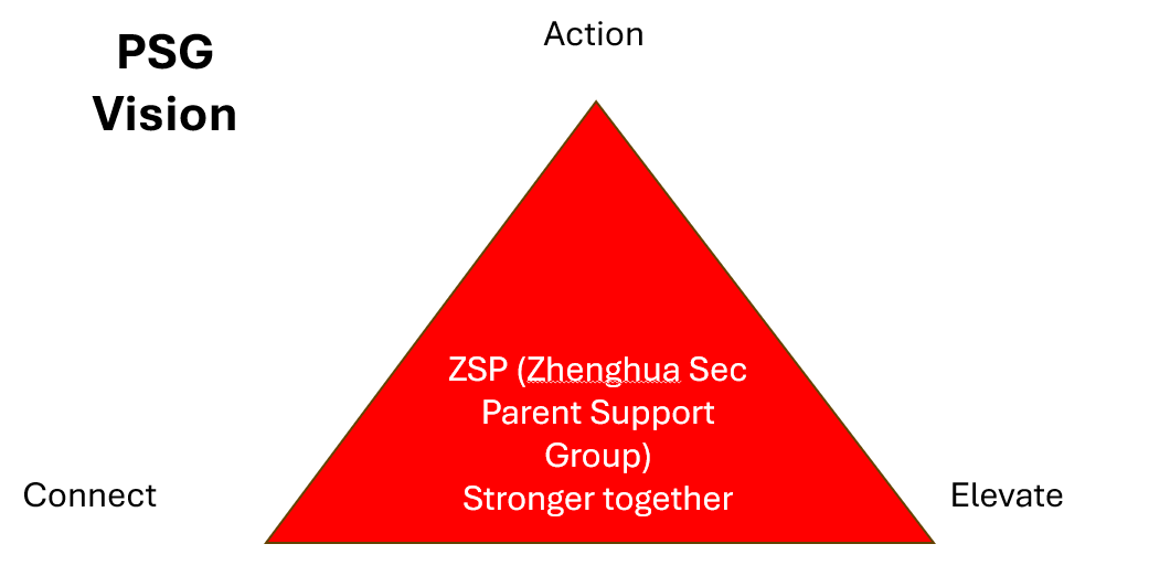 All parents are automatically members of the Zhenghua Secondary School Parent Support Group (ZSS PSG). The ZSS PSG is a network of parents working in close partnership with the school. Being part of the PSG is a great opportunity to be closer to our children, understand them better, and support them in their educational journey. Members can participate in school activities and events, contribute to initiatives, network with other parents, and learn more about helping our children thrive in society.