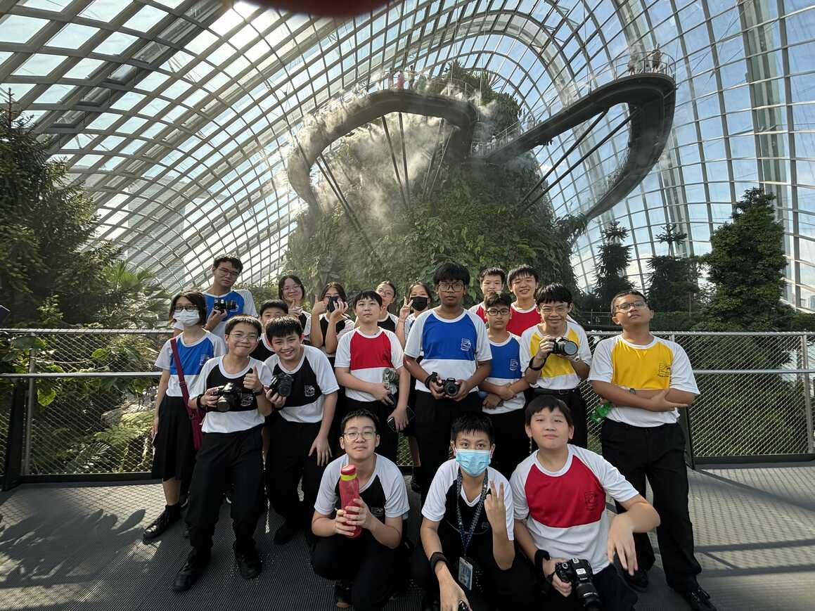 Infocomm Club members hone their photography skills during a learning journey to Gardens by the Bay's Cloud Forest, capturing Singapore's iconic attractions through their lenses.