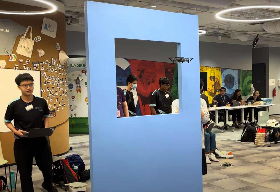 A student demonstrates advanced coding skills at the National Youth Tech Championships, programming a drone to navigate complex obstacle courses with precision