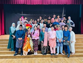 Our class representatives shine on stage in colourful Malay traditional costumes, bringing festive cheer to the competition.